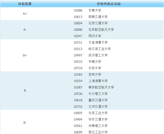 表1 交通运输类第四轮学科评估高校评估结果